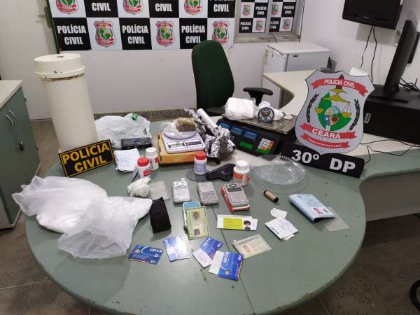 Uma investigação realizada pela Polícia Civil do Estado do Ceará (PCCE) resultou na prisão em flagrante de um casal suspeito de traficar drogas no bairro Conjunto Palmeiras, Área Integrada de Segurança 03 (AIS 03). A captura aconteceu nessa sexta-feira (14). Com eles, foram apreendidas drogas, balanças de precisão, aparelhos celulares, cartões de crédito e objetos utilizados para embalar os entorpecentes.