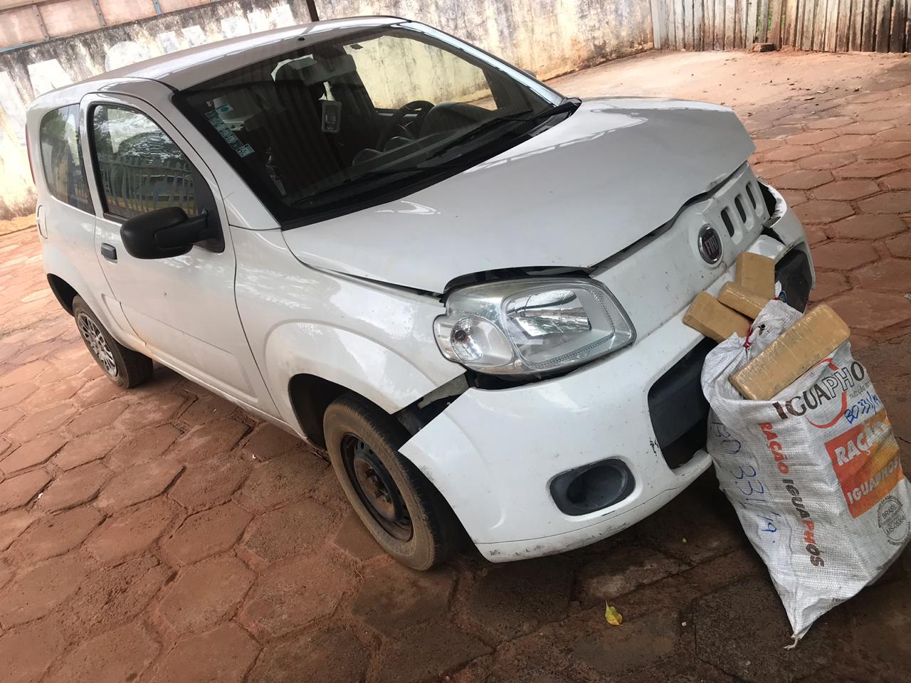 Ao tentar socorrer o motorista, os policiais perceberam que haviam inconsistências e ao realizarem uma varredura próximo ao local, encontraram 46 tabletes de maconha, que o condutor acabou assumindo ser de sua propriedade. Relatando ainda, que duas mulheres que teriam ido à cidade pedir ajuda, também participavam do transporte da droga.