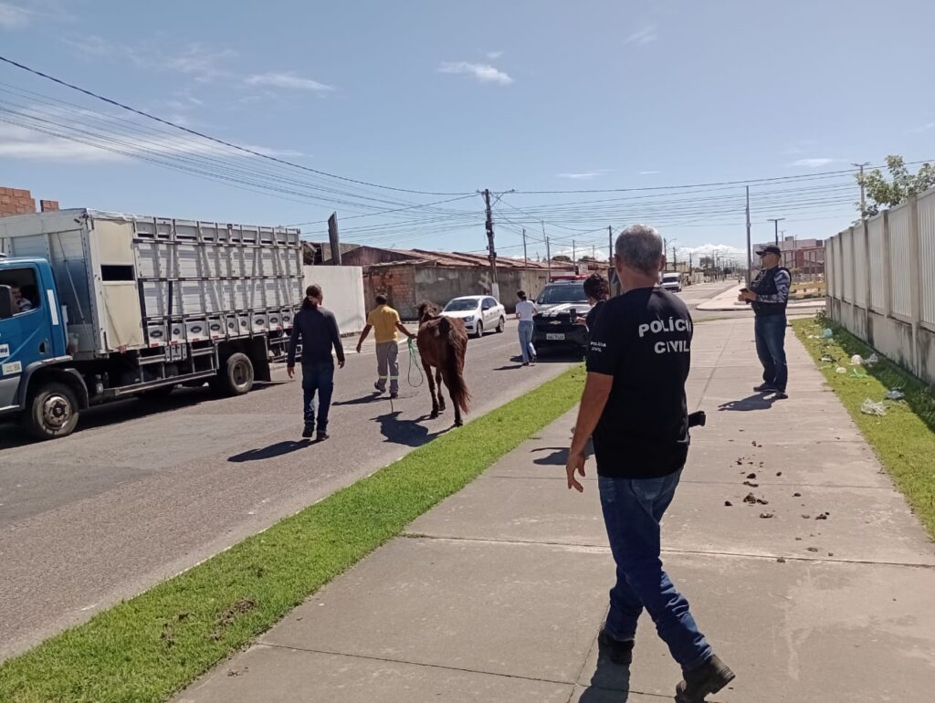 A Delegacia Especial de Proteção Animal e Meio Ambiente (Depama), em parceria com o Centro de Apreensões da Empresa Municipal de Serviços Urbanos (Emsurb), apreendeu na manhã desta quarta-feira, 9, na Zona Sul de Aracaju, três cavalos soltos em via pública. Os animais foram recolhidos durante operação que objetivava averiguar denúncias de equinos soltos, causando risco de acidentes, bem como a presença de cavalos vítimas de maus-tratos na localidade. Durante o trabalho policial, foram feitas três apreensões de equinos soltos na via. Os bichos foram encaminhados para o Centro de Apreensão e, após receberem os devidos cuidados e atendimento veterinário, foi feita a emissão do relatório de atendimento, constatando que dois deles apresentavam quadro de saúde bastante debilitado e eram vítimas de maus-tratos. Diante dos casos, a Depama cuidará do procedimento criminal e os responsáveis pelos animais responderão pela prática do crime de maus-tratos. A previsão é de que, devido às constantes denúncias, as operações continuem sendo realizadas.