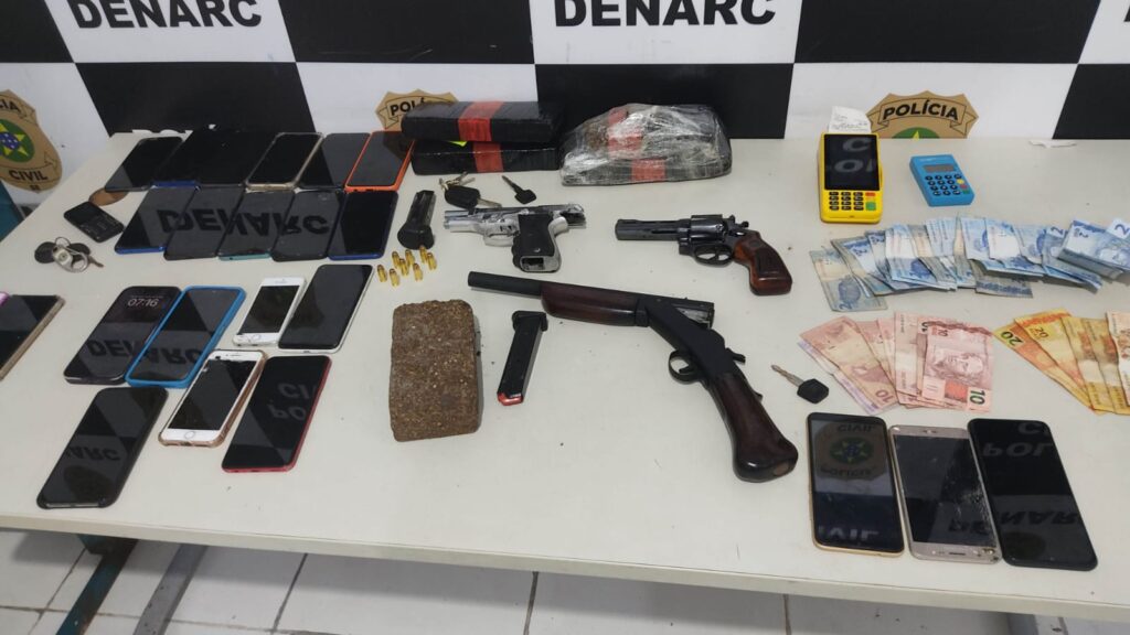 Na ação policial, foram apreendidas drogas, armas e celulares. As investigações vão continuar, e os celulares vão ser submetidos a perícia para identificar mais informações e a materialidade da comprovação do tráfico dessa associação criminosa.
